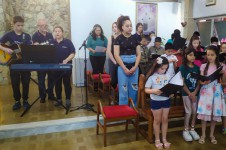 Após a celebração, foi realizada uma confraternização com as crianças, adolescentes e famílias da Ação Social Murialdo, no refeitório da Ação Social.
